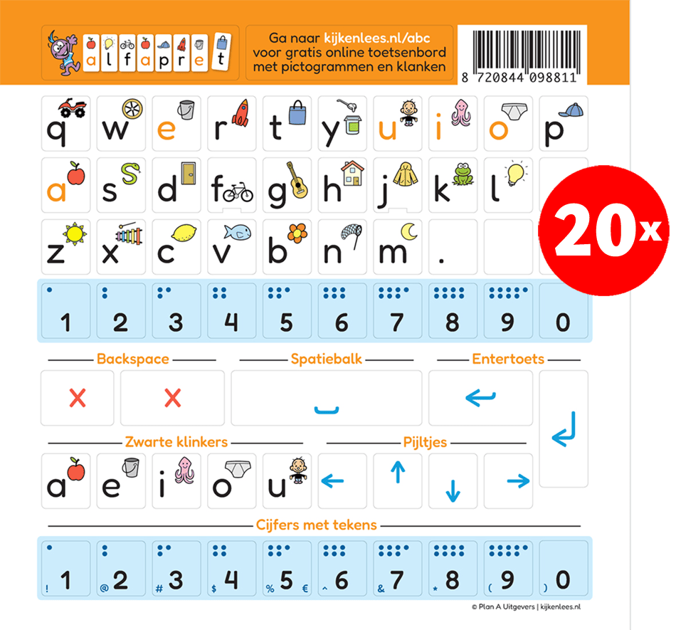 Met deze toetsenbord stickers van Alfapret leert je kind spelenderwijs de letters (her)kennen!